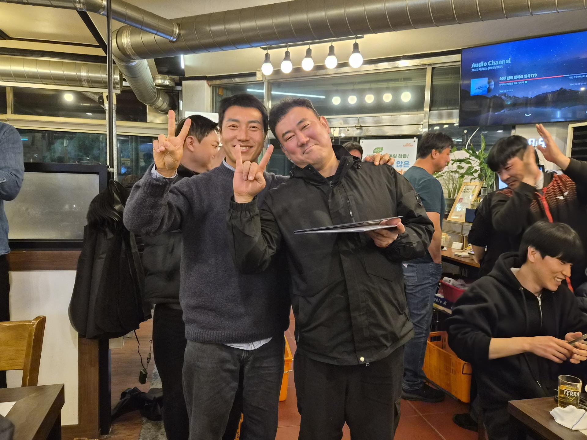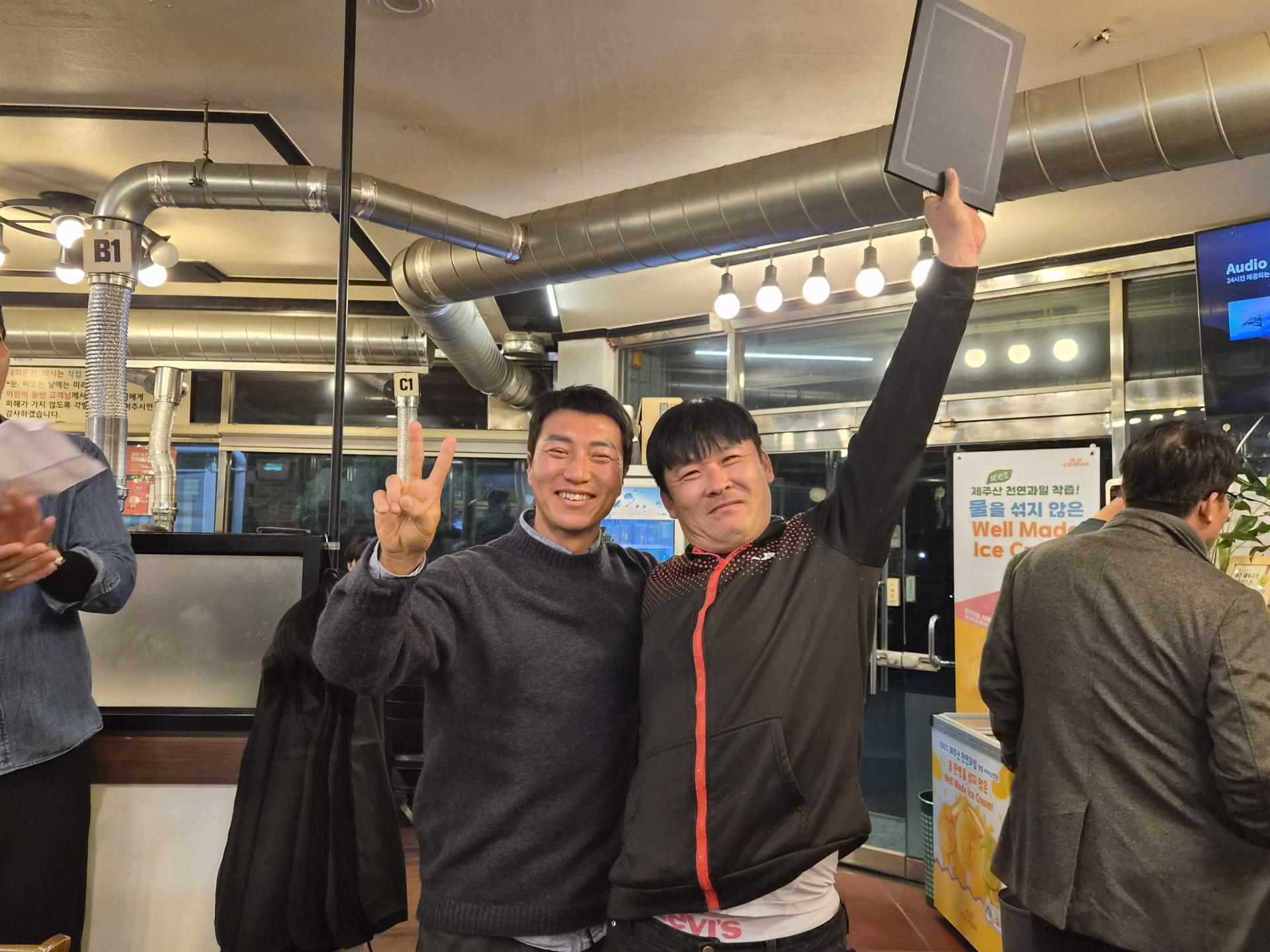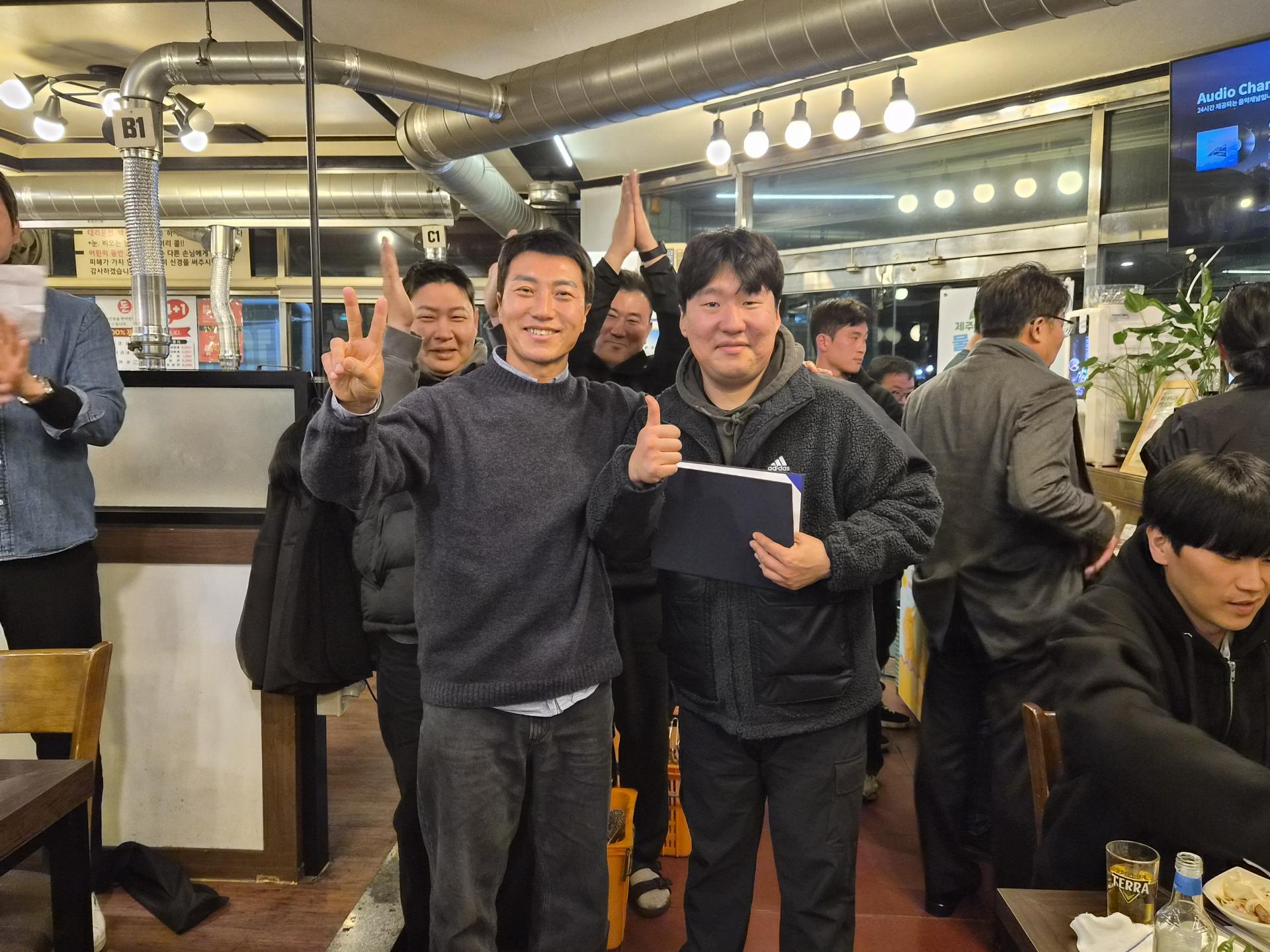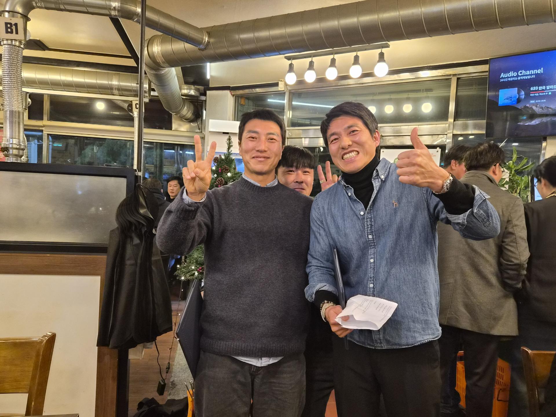 ์์์๋ถ๋ค์ ๋ฐ์ ๋ฏธ์์ ํจ๊ป ๋๋ฃ๋ค์ ์ถํ์ ๊ฒฉ๋ ค๊ฐ ๋ํด์ ธ ํ์ฅ์ ๋ฐ๋ปํ ๋ถ์๊ธฐ๋ก ๊ฐ๋ํ์ต๋๋ค.