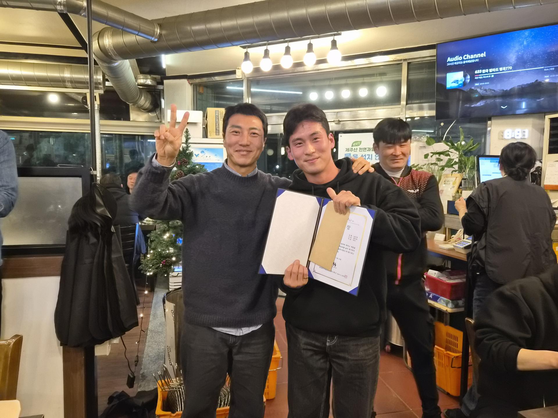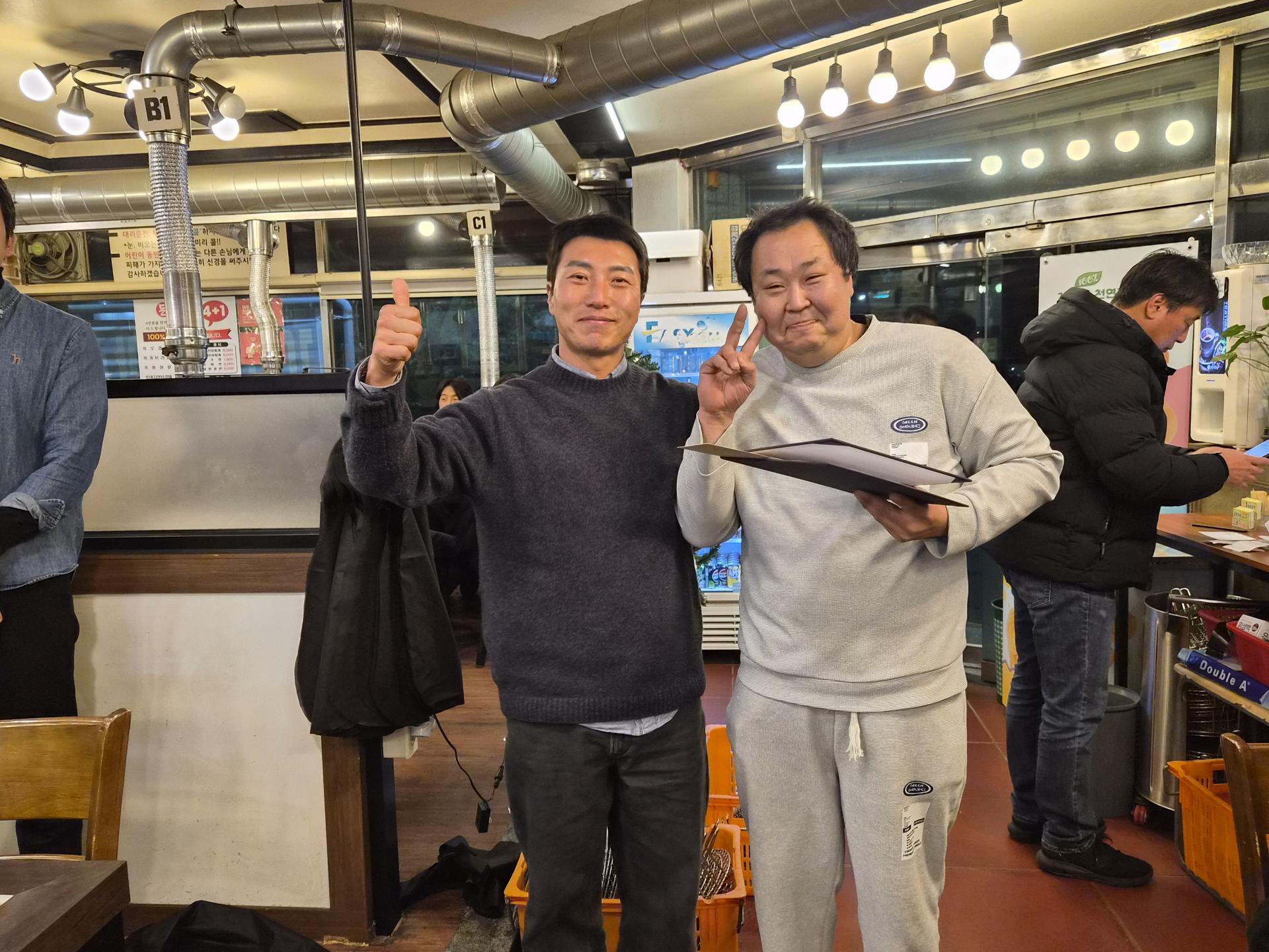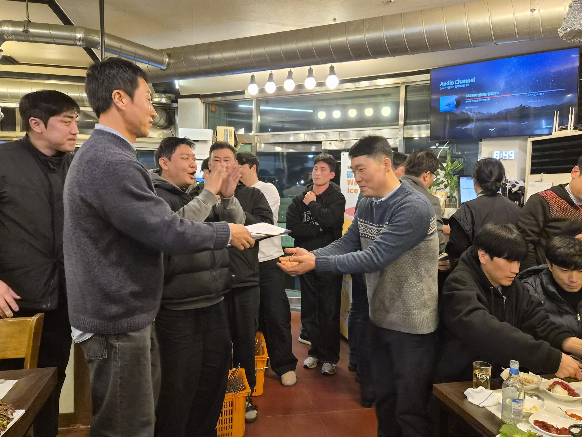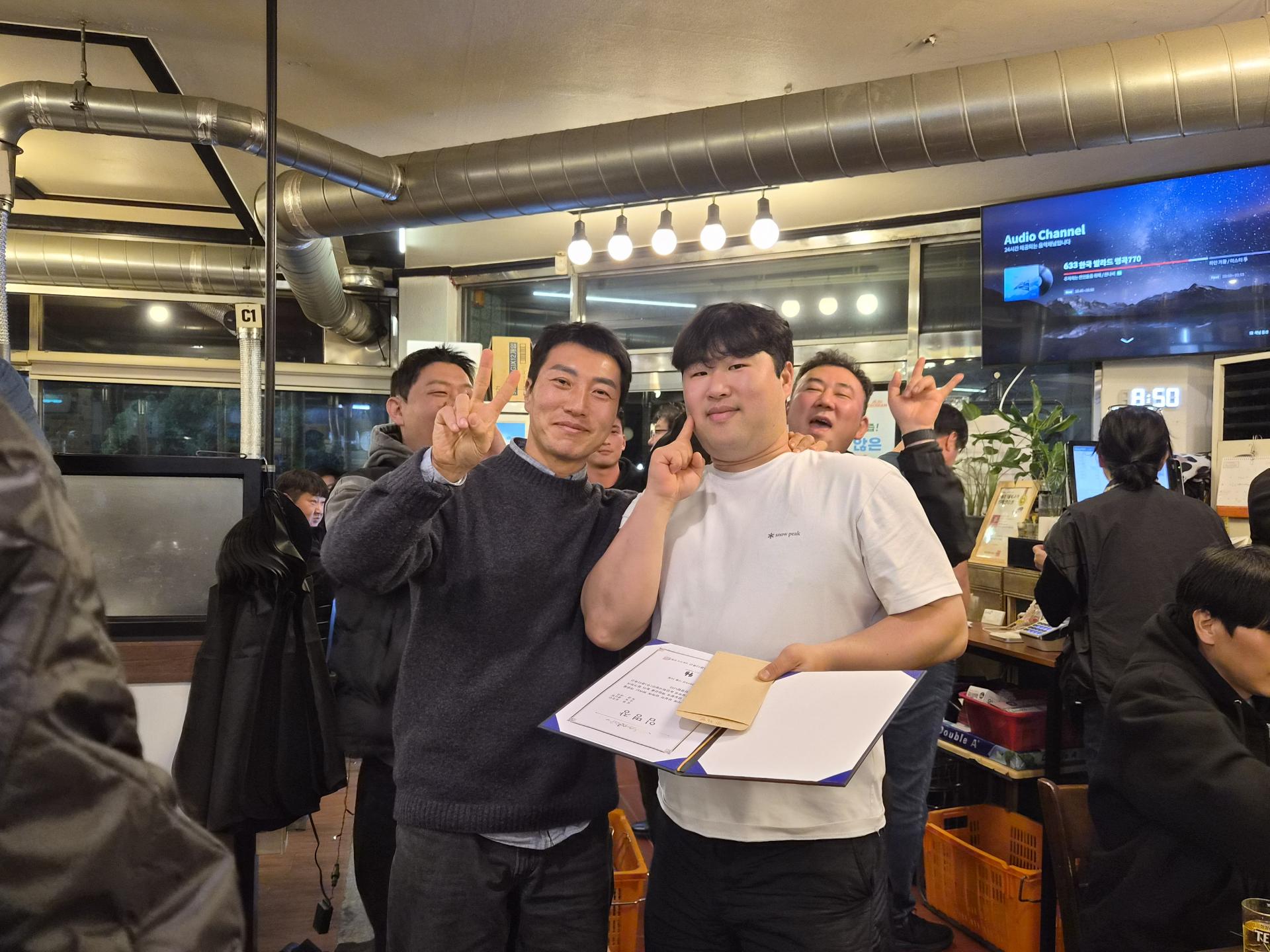 ์์์๋ถ๋ค์ ๋ฐ์ ๋ฏธ์์ ํจ๊ป ๋๋ฃ๋ค์ ์ถํ์ ๊ฒฉ๋ ค๊ฐ ๋ํด์ ธ ํ์ฅ์ ๋ฐ๋ปํ ๋ถ์๊ธฐ๋ก ๊ฐ๋ํ์ต๋๋ค.